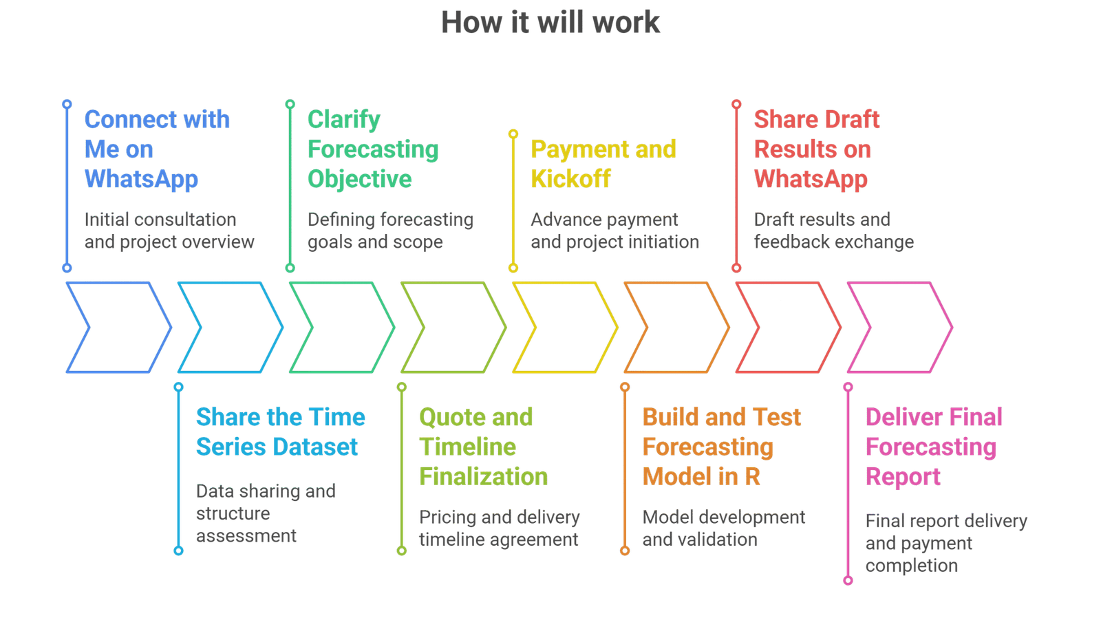 I bring 7+ years of experience in data analytics with a specialization in time series forecasting using R. I help clients from various sectors predict future trends and patterns accurately, turning temporal data into clear, actionable forecasts.