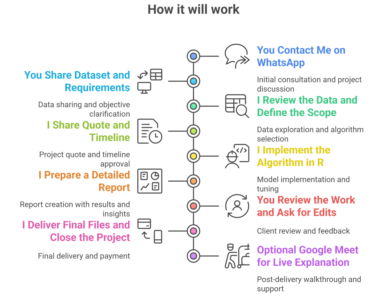 Combining strong machine learning knowledge with R programming expertise, I provide guidance in not just implementing algorithms but also in understanding their underlying mechanics. My focus is on empowering you to build robust models and present your findings in clear, detailed reports.