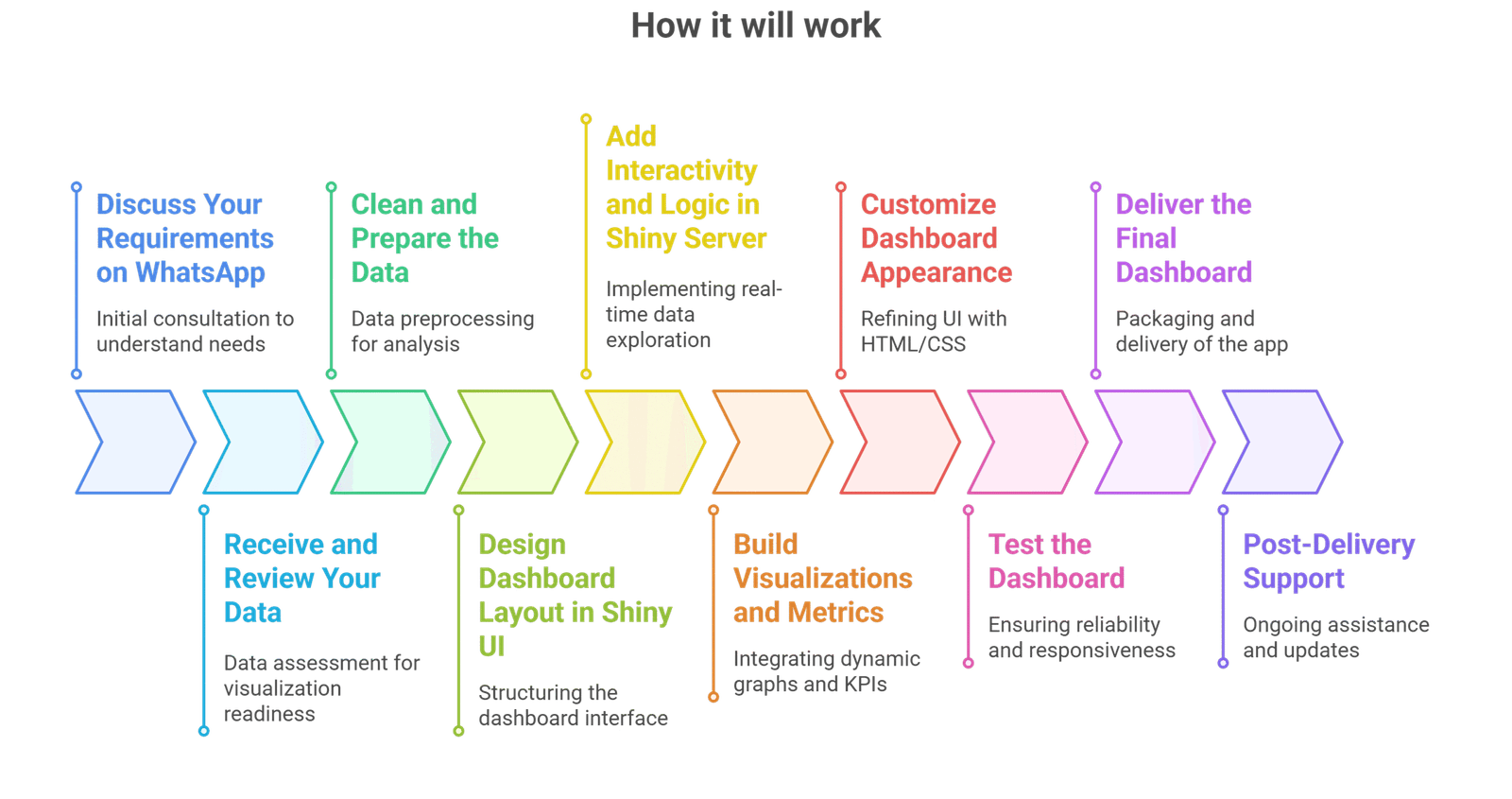 As an experienced data analyst, I specialize in building dynamic, user-centric dashboards using R Shiny, tailored to suit your business or research needs. My dashboards not only visualize data effectively but also enable users to explore, manipulate, and gain insights interactively—enhancing both usability and decision-making.